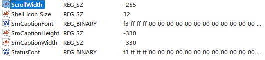 컴퓨터\HKEY_CURRENT_USER\Control Panel\Desktop\WindowMetrics