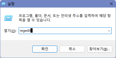 1.윈도우 키 + R을 눌러 실행창을 열고 'regedit'을 입력후 확인